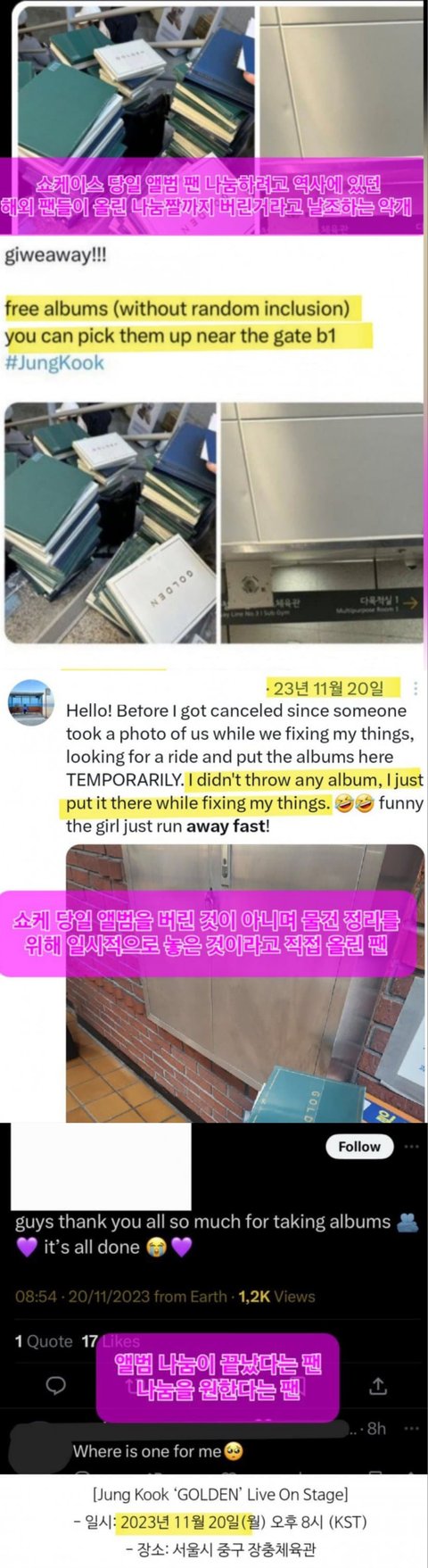 ㅁㄱ 쇼케 당일날 나눔하려고 해외 팬들이 트위터에 올린거 버린거라고 갤에서 여초에 작업치다 방갤 파일명 걸린지가 2년 전인데 사골 우려먹네 악갠지 방탄깐지 적당히해