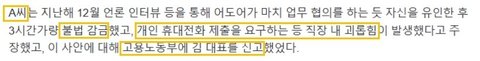 A씨(=직접계약 주선한 어도어 소속의 매니저)는 불법 감금, 불법감사 주장하며 김주영 어도어 대표 고용노동부에 신고