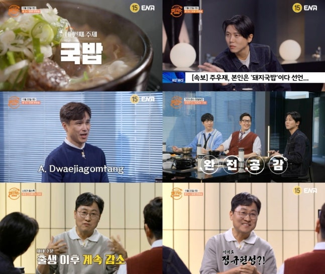 연예계의 유명 '소식좌' 주우재는 "끼니를 알약으로 해결하고 싶다"는 의견을 밝혀 화제를 모은 바 있다. 그런 그가 국밥 토크에 과몰입한 나머지, "돼지국밥은 나 자체"라는 맛 공식을 발표, 파란을 일으킬 예정. 맛까지 챙기는 게 피곤하다며 알약 식사를 상상했던 주우재가 자신을 국밥이라고 말한 배경이 궁금증이 더한다. 여기에 인지심리학자 김태훈까지 합류하면서, 주우재의 한마디로 시작된 '국밥 분석' 토크가 더욱 뜨겁게 달아오를 전망이다.