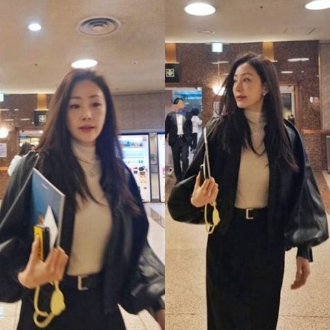 공개된 사진 속 오나라는 한 공연장 로비로 보이는 공간을 여유롭게 걸으며 포즈를 취하고 있다. 아이보리 터틀넥에 블랙 가죽 재킷, 롱 스커트와 벨트를 매치해 세련된 올블랙 룩을 완성했다. 손에는 프로그램북과 마스크를 든 채 자연스럽게 카메라를 향하고 있는데, 약간 흐릿한 초점 덕에 분위기 있는 필름 사진 같은 무드와 ‘무보정 미모’가 한층 도드라진다.