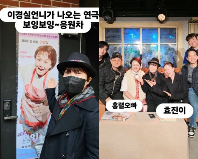 조혜련은 지난 22일 개인 SNS에 "이경실 언니와 정가은이 나오는 연극"이라며 사진과 영상들을 게재했다. 공개된 사진과 영상에는 조혜련이 이홍렬, 김효진 등 절친한 코미디언 동료들과 함께 이경실, 정가은이 출연하는 연극 '스페셜 보잉보잉'을 관람한 모습이 담겼다.