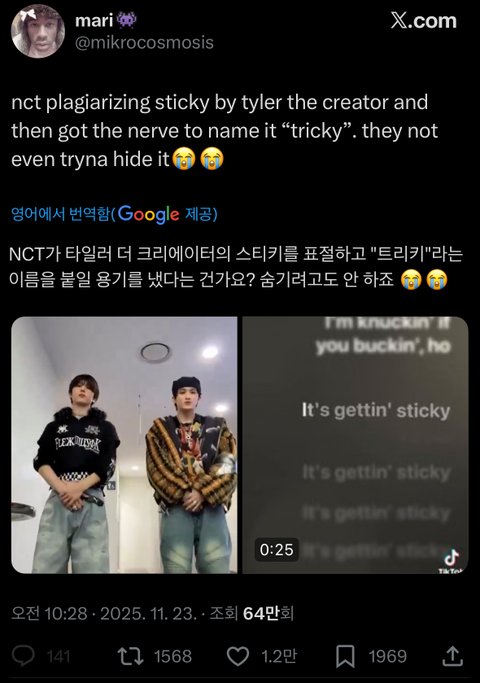트리키 노래에 스티키 춤 춘 릴스보니깐 걍 노래 빼다 박았는데
