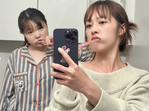 또 다른 사진에서는 호텔 욕실에서 함께 양치하며 하루를 마무리하는 자연스러운 모습도 포착됐다. 별다른 연출 없이 서로를 있는 그대로 담은 사진에 팬들은 “둘이서 너무 힐링하잖아”, “우정이 부럽다”, “쌍둥이 분위기” 등 뜨거운 반응을 보냈다.