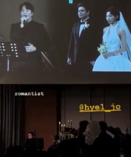 또한 이세미는 지인들이 촬영한 남편 민우혁의 축가 영상 또한 공유했다. 영상 속 민우혁은 이장우, 조혜원의 결혼식 축가를 맡아 진정성 있는 음색으로 의미를 더했다. 세레나데를 경청하는 이장우, 조혜원의 모습 또한 스크린을 통해 하객들에게 공개돼 눈길을 모았다.
