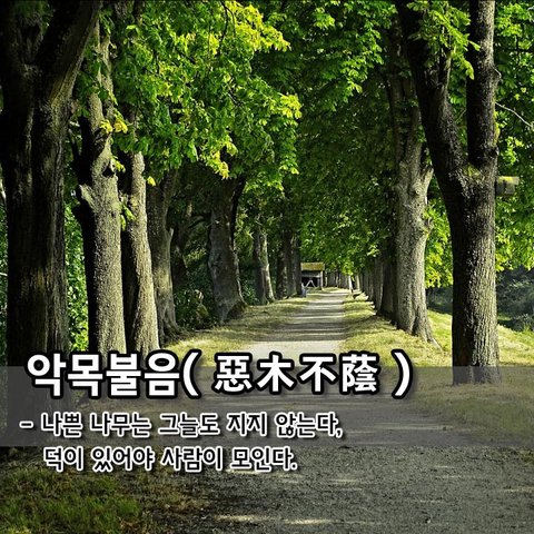 악목불음惡木不蔭 - 나쁜 나무는 그늘도 지지 않는다, 덕이 있어야 사람이 모인다.