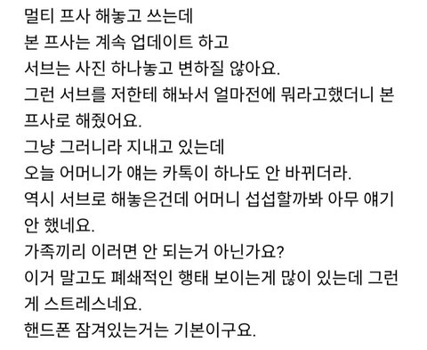 아내 멀티 프사 시댁 식구에게만 서브로 함