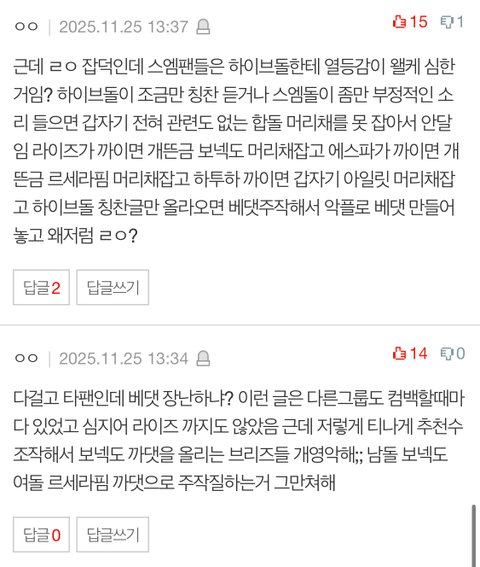 제니 카리나 주어만 바꾸는 걔가 엔터판 분탕 원인임 걔가 리사 로제 윈터 다 돌려까고 댓글에 홍은채 선글라스짤로 시작해서 릇 슴퀴 트와..