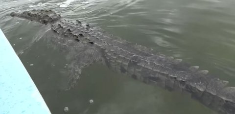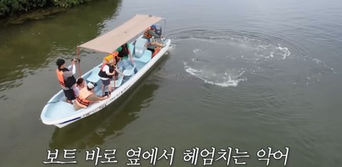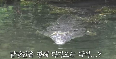 그리고 점점 멤버들이 타고 있는 배쪽으로 다가오는 악어