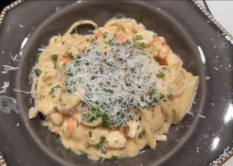 요리 라방 메뉴: 성게알 간장 크림 새우 파스타