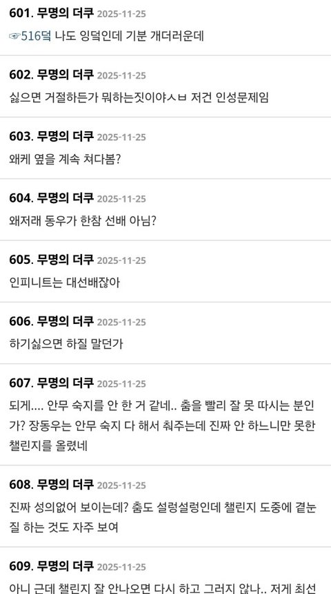 선배 챌린지는 설렁설렁 추고 지챌린지는ㅈㄴ 열심히 ㅋ이거 딱 본인만 아는 초딩 자아비대 평소 천러 성격이라서 놀랍지도 않다ㅉ 얘는 ㅈㅉ 햋ㅏ이보다 더 욕먹어야되는 ㅆㄹㄱ인데