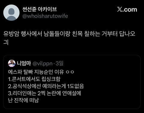 요즘 트위터에서 몇몇 에스파 줘패는 계정들 갑자기 ㅈㄴ 활발하게 활동하잖아