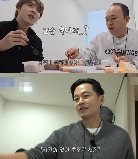 담 스케줄 때문에 시간 없으니까 그만 먹고 일어나라는 서진아빠 ㅋㅋㅋㅋ