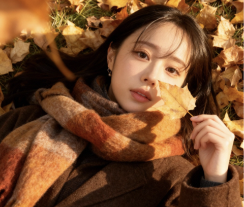 공개된 사진 속 이솔이는 낙엽이 수북이 쌓인 바닥에 누워 낙엽 한 장을 들고 있는 모습이다. AI로 이미지를 만든 것으로 추정된다.