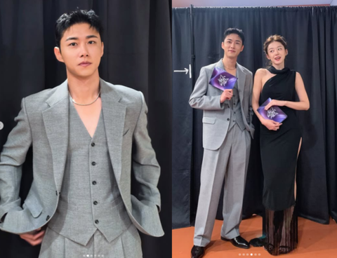 사진 속 서지훈은 같은 날 인천 인스파이어 아레나에서 열린 ‘2025 코리아 그랜드 뮤직 어워즈(KGMA)’ 시상자로 참석한 모습이다. 그는 그레이 컬러의 쓰리피스 수트를 완벽하게 소화하며 댄디한 매력을 발산했다. 깊게 파인 브이넥 조끼와 체인 목걸이로 포인트를 더한 스타일링은 그의 훈훈한 비주얼을 더욱 돋보이게 한다.