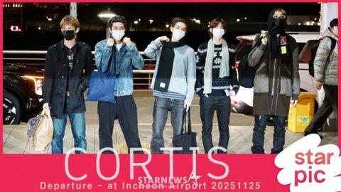 그룹 코르티스(CORTIS) 마틴, 제임스, 주훈, 성현, 건호가 홍콩에서 열리는 '2025 MAMA AWARDS' 참석 차 26일 오전 인천국제공항을 통해 출국하고 있다. 2025.11.26