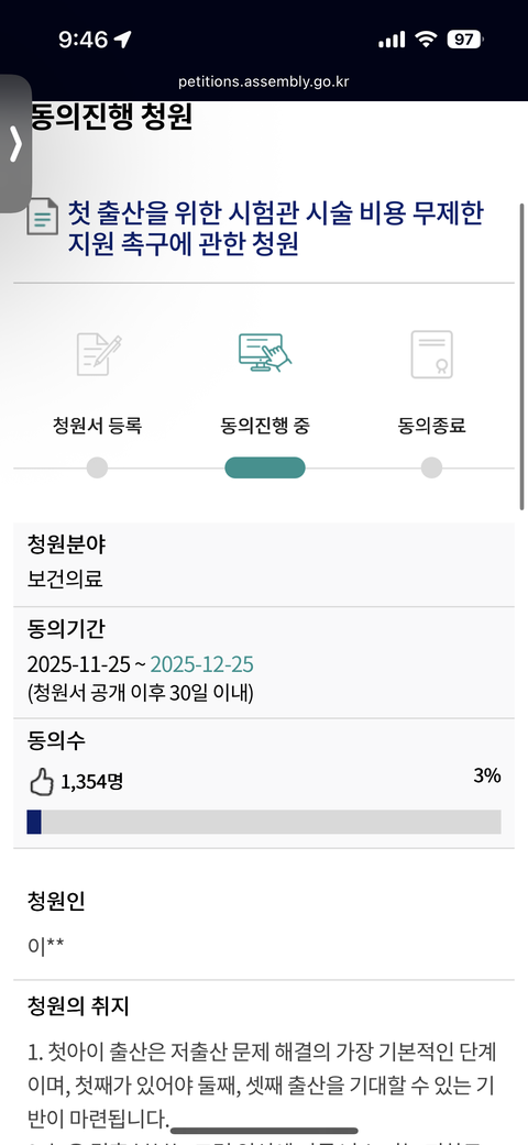 [청원동참부탁드립니다] ❤️첫아이 시험관 무제한 지원에 관한 청원❤️
