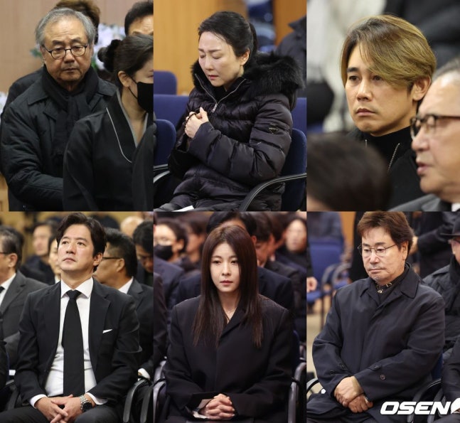 [OSEN=조은정 기자] 故 이순재의 영결식과 및 발인이 27일 오전 서울 송파구 서울아산병원 장례식장에서 엄수됐다.영결식은 배우 정보석이 사회를 맡고 배우 김영철과 하지원이 추도사를 맡아 의미를 더했다. 특히 정보석은 레전드 시트콤으로 회자되는 '거침없이 하이킥'에서 이순재의 극 중 사위로 등장했고, 하지원은 이순재의 연극 무대들을 챙겨보며 팬클럽 회장을 자처했던 터. 고인의 발자취를 함께 해온 후배 연기자들의 추모가 의미를 더했다.배우 정일우가 영결식에 참석해 눈물을 흘리고 있다. 2025.11.27/cej@osen.co.kr추모사 후 故이순재를 추모하는 영상이 공개됐으며, 정보석의 주도로 현장에 있는 이들이 국화꽃을 헌화했다. 정보석은 故이순재의 나이에 맞춰 91송이가 준비됐고, 유족과 후배뿐만 아니라 제자들도 헌화와 목례, 기도 등 자신만의 방식으로 고인을 추모했다. 특히 ‘거침없이 하이킥’에서 고인의 손자로 출연했던 배우 정일우는 오열하는 모습이 포착돼 안타까움을 자아냈다.