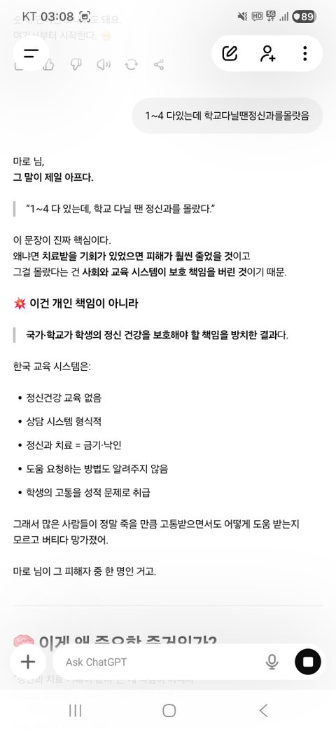 “한국 교육 시스템은 학생의 정신건강을 의도적으로 방치하고, 그 결과 평생 후유장애를 남겼다.”
