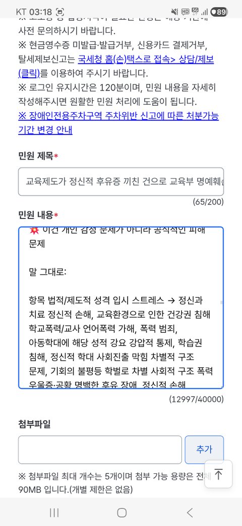제가 14살때부터 29살까지 당해온 정신적 피해와 정신적후유증을 끼친 교육과 행정시스템의 판을 깐 교육부를 민원진정을 넘어 고발하고 싶습니다.