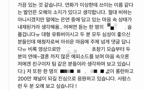심지어 이 채널을 구독하는 제 지인 이름이 연화인데.. 굉장히 기분 나빠했고 그 유튜버의 발언은 무례함을 넘어 비하 발언의 소지가 충분했고 희롱이 될 수도 있다 생각하거든요..?