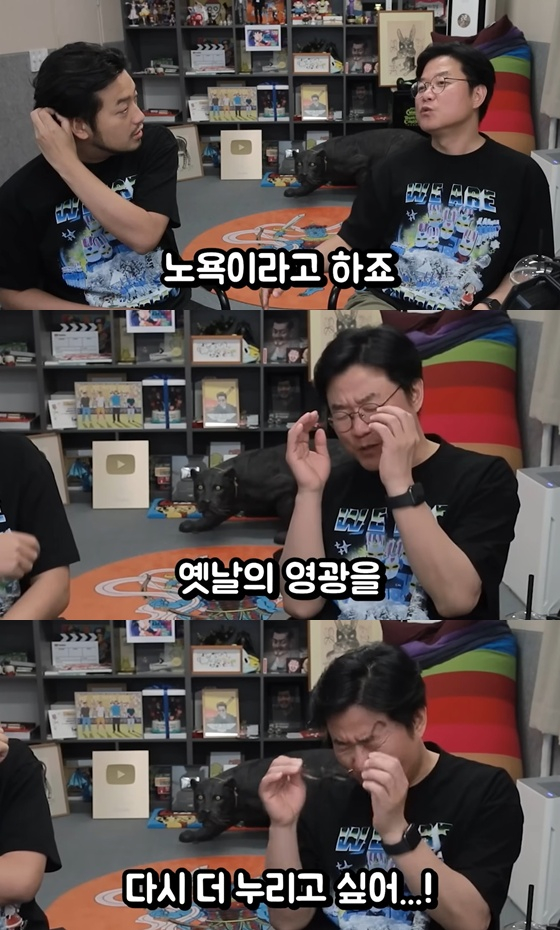 /사진=침착맨 유튜브 채널 영상 캡처나영석 PD는 "저 입사 때만 해도 소위 말해 현장, 필드에 있는 시기는 한 마흔 살까지이고 마흔이 넘어가면 보통 '데스크에 앉는다'고 표현한다. CP 직함을 달거나 부장님이 되는 거다. 저도 나이로는 현장에 있을 시기가 넘었는데, 너무 많이 급변하다 보니 저처럼 오래 이 자리에 있는 사람도 많아졌다"라고 말하기도 했다.'자가복제' 쓴소리에도 현장을 뛰어다니는 원동력은 무엇이었을까. 나영석 PD는 "욕심이 있으니까 한다기보다는, 아직도 현장에서 하고 싶은 게 있다. 이걸 '노욕(老慾)'이라고 한다. 정말 솔직히 얘기하면, 옛날의 영광을 다시 더 누리고 싶은 게 있다. 더 늦기 전에, 다시 한번 더 말이다. 운 좋게 대박이 나서 '이거 봐 내가 또 해냈어', 이걸 하고 싶은 거다. 나이 50에 이런 짜릿함을 느끼고 싶은 게 '노욕'이다. 두들겨 맞으면서도 '난 아직 쓰러지지 않았어' 이런 느낌이다"라고 가감 없이 얘기했다.