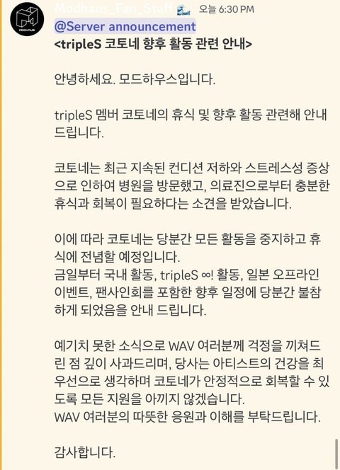 트리플에스 코토네 활동중단