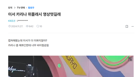 이서랑 같이있는 영상 쵸단이랑 같이있는 영상에 왜 이서 쵸단이 더 이쁘지? 이런 댓글 많이 달리는데 애초에 SM팬들이 SM이라서 뜬 카리나를 외모로 뜬거라고 바이럴돌렸으니 카리나랑 비슷하거나 더 이쁜 여돌들이 많은게 당연함