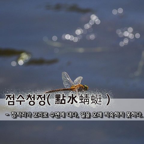 점수청정(點水蜻蜓) - 잠자리가 꼬리로 수면에 대다, 일을 오래 지속하지 못하다.