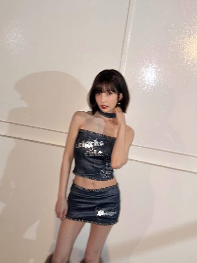 사진 속 조이는 데님 크롭톱과 미니스커트로 구성된 Y2K 스타일을 완성했다. 슬림한 실루엣뿐 아니라 눈에 띄게 갈라진 11자 복근이 시선을 단번에 사로잡았다. 전보다 더욱 얇아진 팔다리와 매끈한 허리 라인은 꾸준한 운동과 철저한 관리의 결과임을 보여준다.