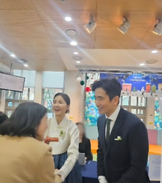 공개된 사진 속 신애라는 정갈하게 올린 하이 번(올림머리)에 단아한 혼주 한복을 입고 환하게 미소 지으며 하객들과 인사를 나누고 있다. 옆에 선 차인표 역시 깔끔한 블랙 슈트를 갖춰 입고 품격 있는 혼주로서 인사를 건네 눈길을 끌었다.