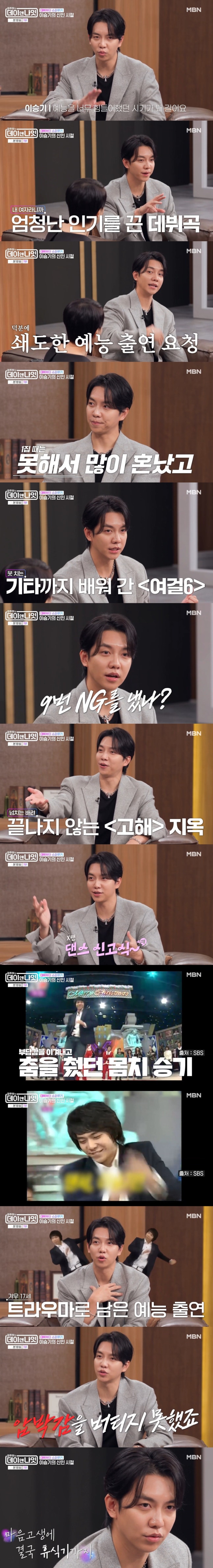 이후 점점 높아지는 사람들의 기대감에 압박감과 부담감을 느꼈다는 이승기는 "예능을 너무 힘들어했던 시기가 꽤 길다"고 털어놨다.