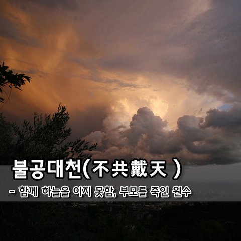 불공대천(不共戴天) - 함께 하늘을 이지 못함, 부모를 죽인 원수