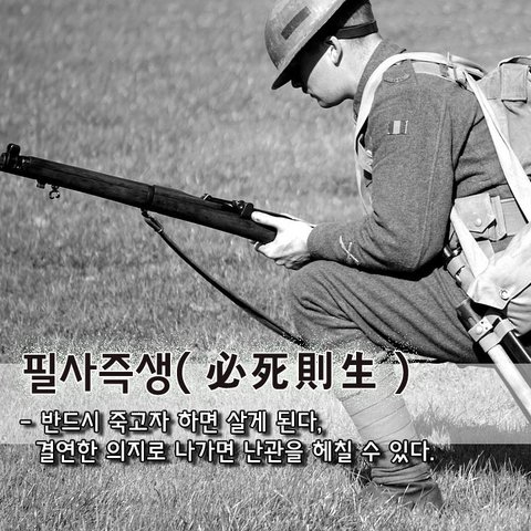 필사즉생必死則生 - 반드시 죽고자 하면 살게 된다, 결연한 의지로 나가면 난관을 헤칠 수 있다.