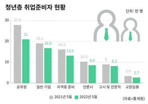 - 공무원을 준비하는 청년이 큰 폭으로 줄어들었다는 통계 조사 결과가 나왔다.