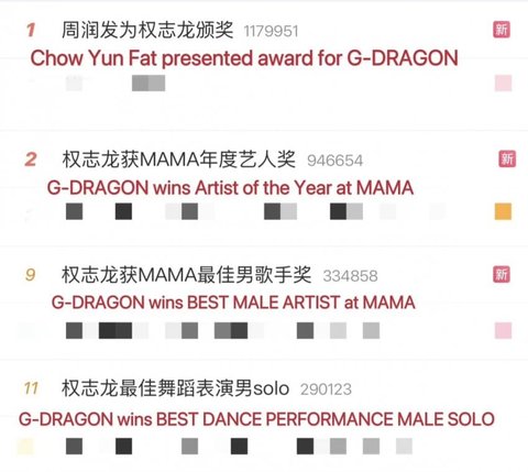샤오홍슈(중국판인스타) 지디 상받은거 홍콩에 2억기부한거 1000만 핫토픽감 참고로 천만 핫토픽 아무거나에 안붙는대