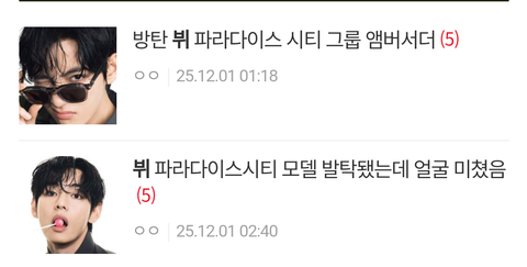 매번 여기서 뷔 떡밥 뜨면 짤 올리고 홍보성 글 올리는 거 그만 하면 안됨? 판 전체적으로 조회수도 낮고 영업 효과도 없는데 왜 수시로 올리는거야 방갤 어그로 새끼들만 잔뜩 끼잖아 이유라도 알자