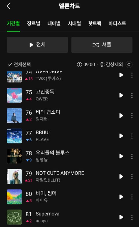 이 정도면 지능적 안티 수준이네.. 저게 어디 대박이야 심지어 본진이라는 일본 애플뮤직은 아예 차트 아웃이던데