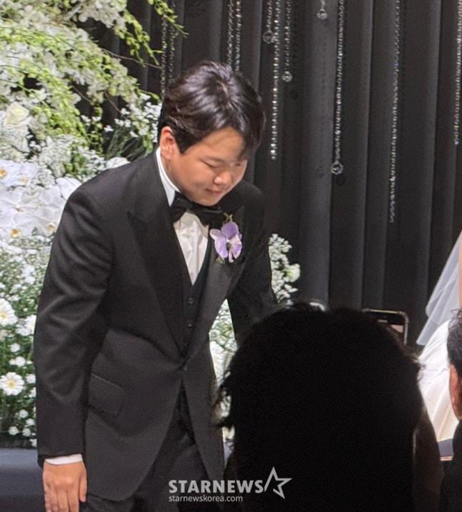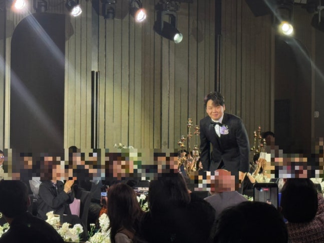 사진 속 곽튜브는 다소 긴장한 표정이지만, 가벼운 미소를 지으며 결혼식장을 찾은 하객들에게 감사 인사를 전하고 있다. 최근 결혼식을 앞두고 93kg에서 약 79kg까지 체중 감량에 성공했다고 밝힌 그는 한층 날렵해진 새신랑의 모습으로 눈길을 끌었다.