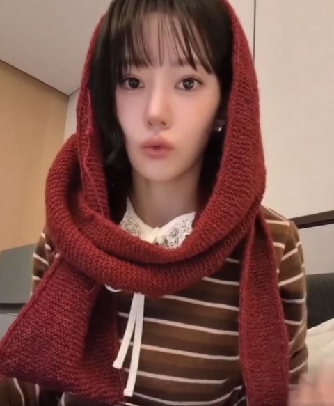 이번엔 후드 목도리? 같은 건가(그와중에 단발 넘 잘어울리고 이쁘다 러블리)
