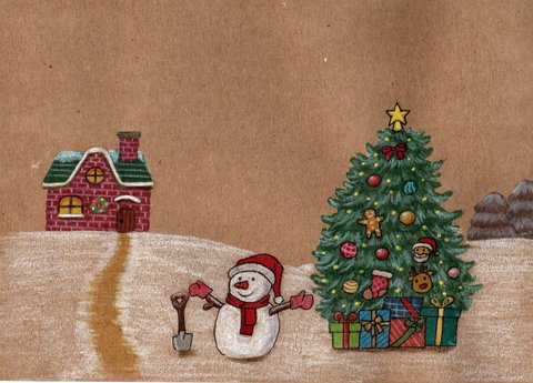 그리고 아직 미완성인 크리스마스 마을... 이미 비슷한 분위기의 그림을 그린 적이 있지만, 트리 모양을 바꿔봤어요. 색연필이나 마커로 하늘을 깔끔하게 칠하기가 어려워서, 하늘은 디지털로 할까 고민 중입니다.