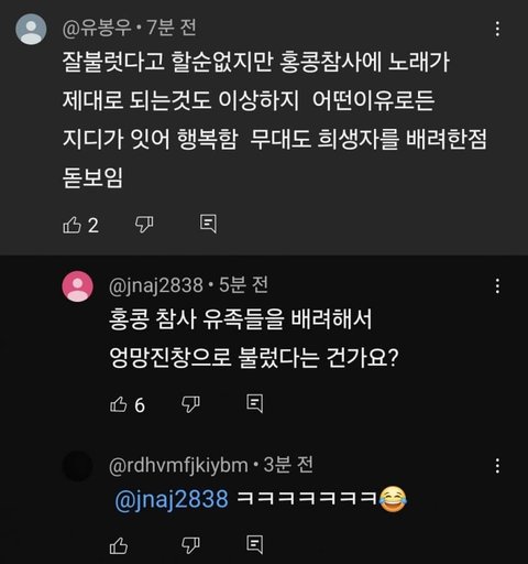 여돌이였으면 죽을때까지 조롱당하고 까이는건 둘째치고 케이팝 역대로봐도 ㅈㄷ팬들처럼 억빠x100 우쭈쭈하는 극성팬들 진심 첨 봄… 뭔 무대를 계속 해줘서 고맙다느니 살아있어줘서 고맙다느니; 누가보면 나라구한 위인인줄 알겠음 세상에 지들이랑 ㅈㄷ밖에 없는줄 아나봐