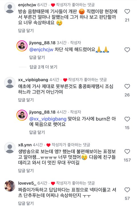 인스타랑 유튭에선 현장 팬캠으로 마마 음향 문제라고 물타기하던데 현장에선 AR에 묻힌걸 누가 모른다고 저렇게 하늘을 손으로 가리려는지 모르겠음.. 하다못해 ㅈㄷ본인도 라이브 망한거 직감하고 무대 끝나자마자 본인 영상에 붐따했는데 하 걍 모든 아이돌들을 ㅈㄷ대하는 너그로움과 관대함의 반의반만큼이라도 대해주면 돌판이 참 아름답고 따뜻할거같아서 개현타옴