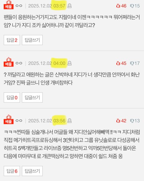 +) 아니나 다를까 새벽에 좌표찍고 빠들 우르르 몰려와서 또 베플 바꿔놨구나 그럴수록 지디만 창피해지는거지 뭐..