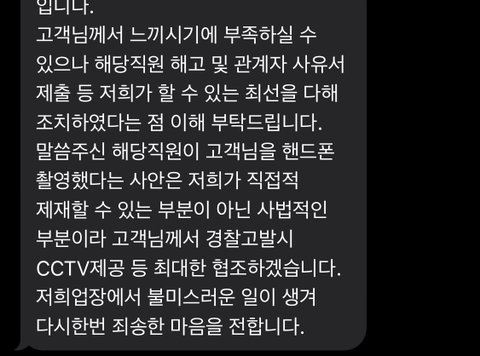 그리고 무엇보다 그 알바생이 저희를 무단으로 촬영한 정황까지 있었습니다. 지웠다고 말했지만 전혀 신뢰할 수 없었습니다.