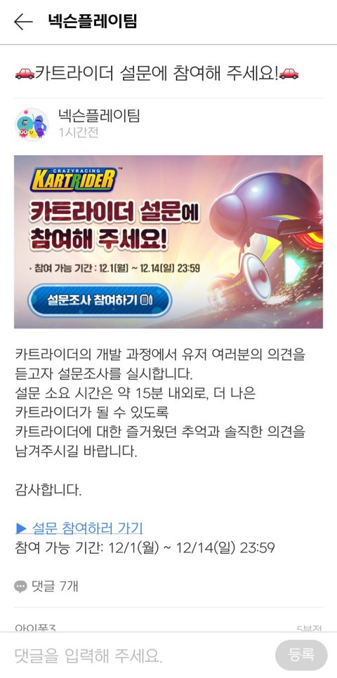 카트라이더 클래식 설문조사 하네 ㅋㅋ