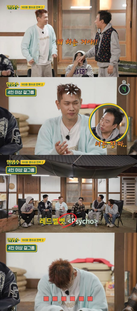 크러쉬는 고민하는 모습을 보이자 박명수는 그를 조롱하며 "너는 진짜.."라고 말했고, 크러쉬는 바로 레드벨벳의 'Psycho(싸이코)'를 부르며 웃음을 자아냈다.