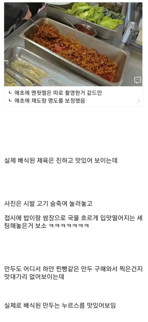실제 배식 사진이랑 제작진들이 찍은 인서트 사진 차이..