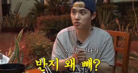 근데 알고보니 스태프가 주워 형들에게 줬고 도경수 보란듯이 테이블 위에 올려놨는데 남의껀줄 알고 저 멀리 내치우다 더 개큰 욕을 먹은 상황 ㅋㅋㅋㅋㅋ