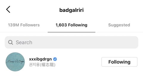 개뻘소리인데 리한나가 예전부터 지디 팔로우하는걸로 유명했던 거 앎? 10년도 전에 팔했더라