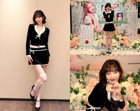 화이트 카라와 리본 디테일이 더해진 스타일링으로 러블리하면서도 클래식한 매력을 강조해 눈길을 끌었다. 또 꽃다발을 안고 있는 모습도 함께 공개돼 팬들의 관심을 모았다.